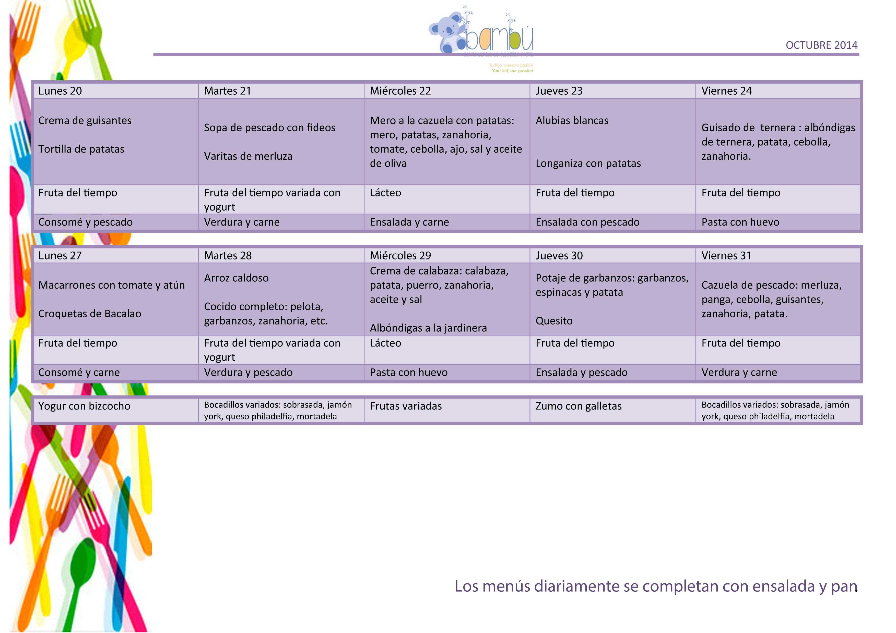 Aquí tenéis el menú del mes de Octubre. ¡Que aproveche!